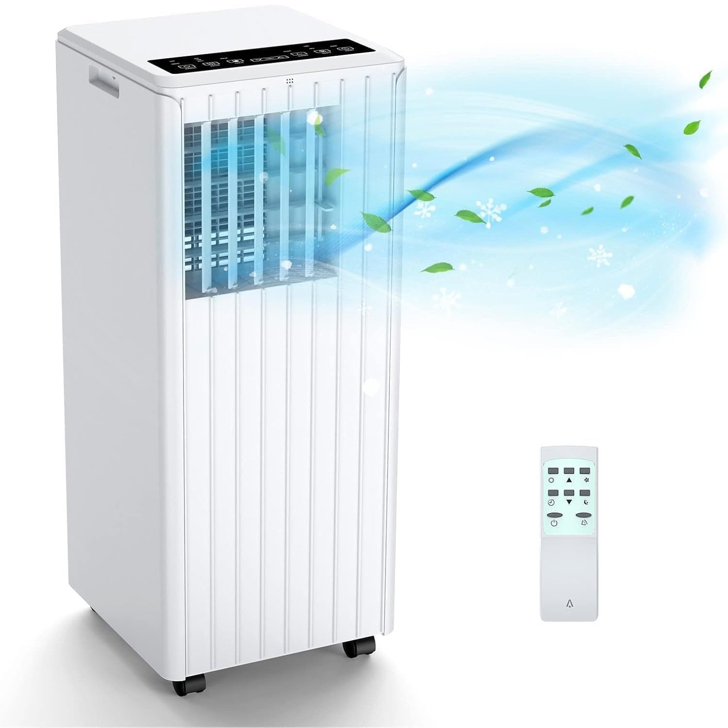 Air Conditioning Unit Portable Air Conditioner 9000 BTU 4-in-1 Dehumidifier, Cooling Fan with 2 Speeds, Digital Display & Remote Control, Window Kit, 24 Hour Timer for Room Up to 269sq.ft