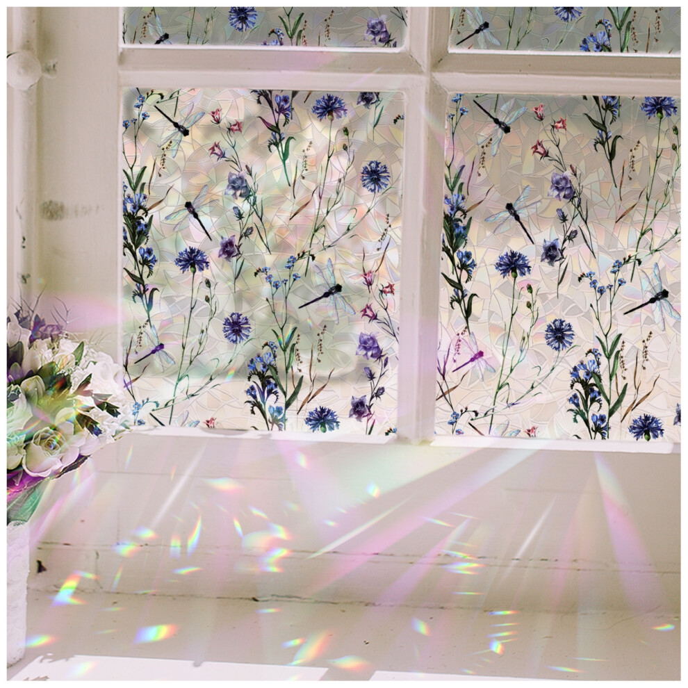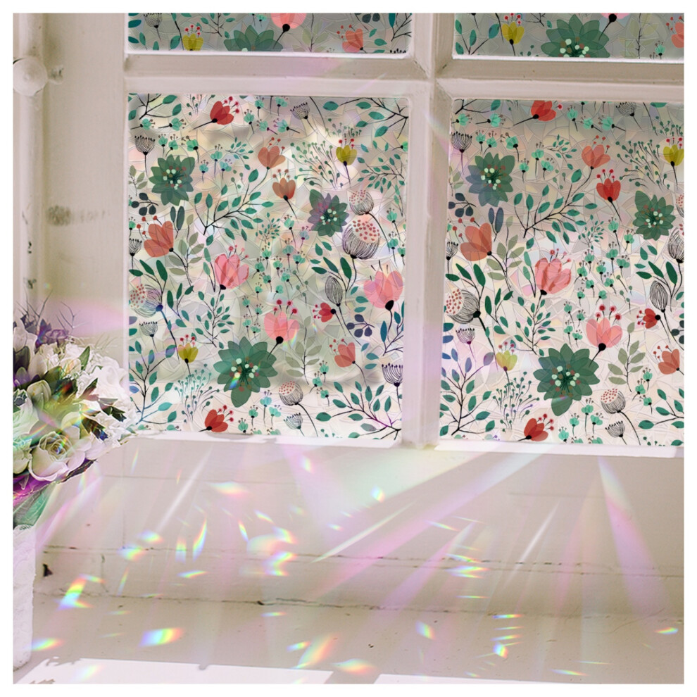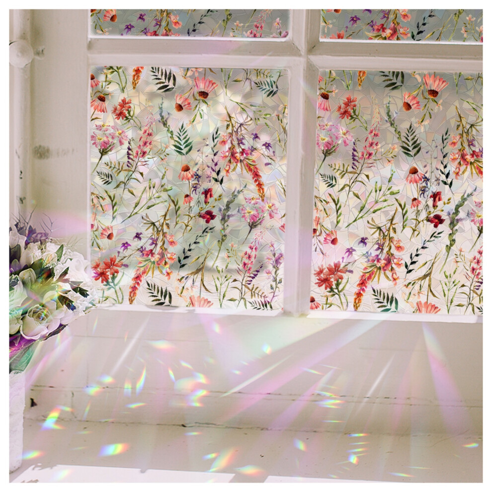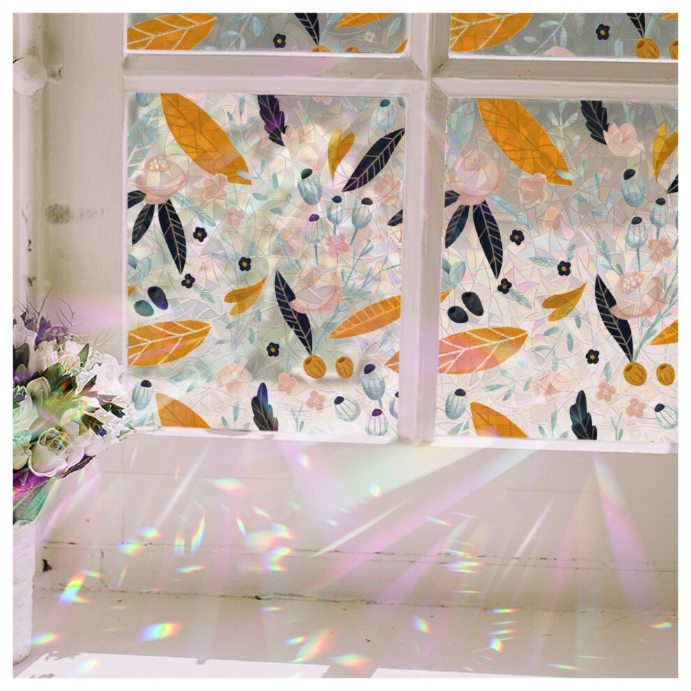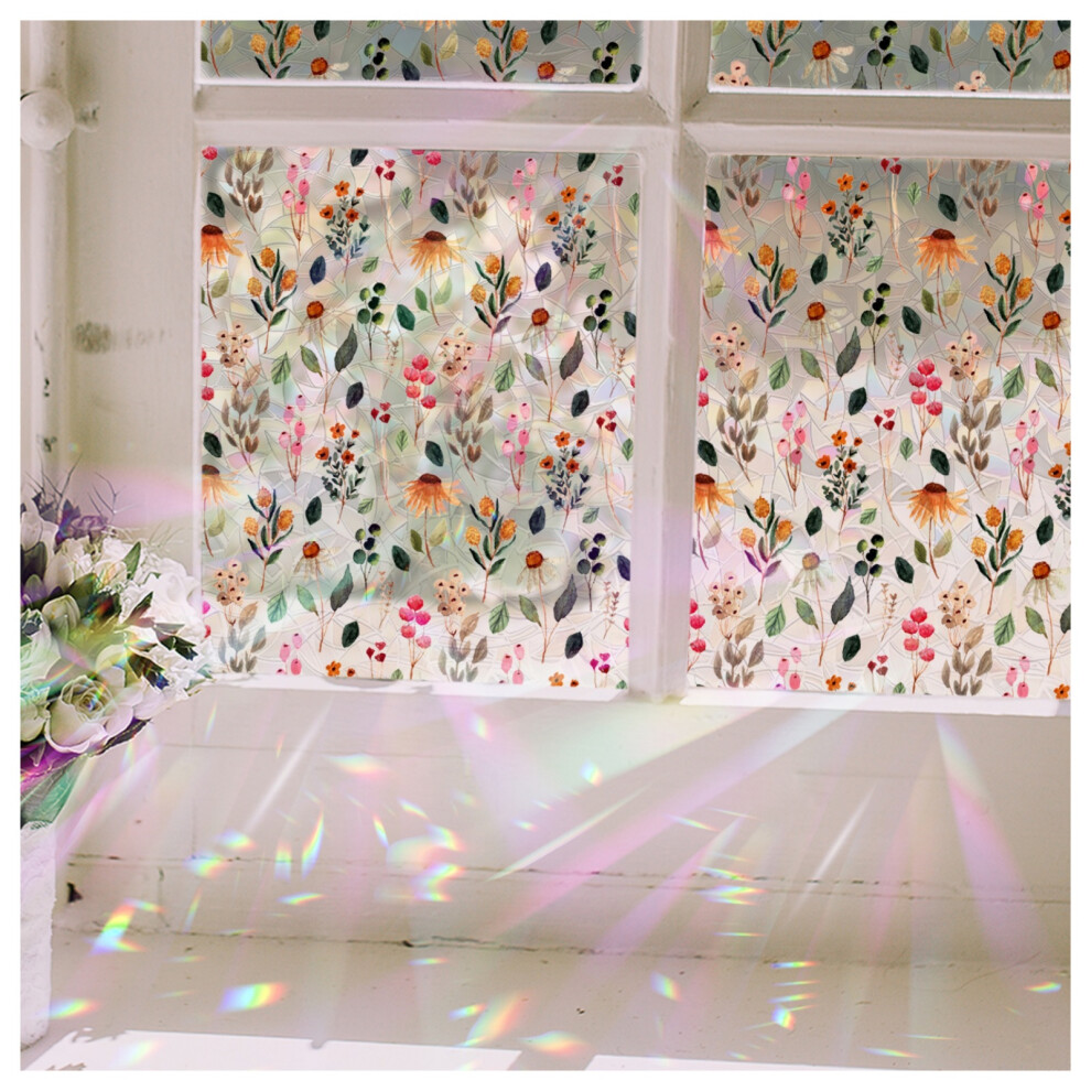 DARUITE Stained Glass Window Film, Rainbow Effect Rose Pattern Decorative Window Films, Anti UV Static Privacy Film for Glass Windows for Home Office, 44,3 x 200cm