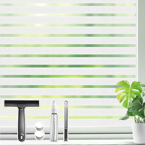 Zindoo Window Films Privacy Non-adhesive Office Glass Stripe Film Static Cling Privacy For All Kinds of Smooth Glass Surface Window Sticker 44.5 X