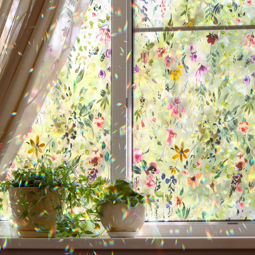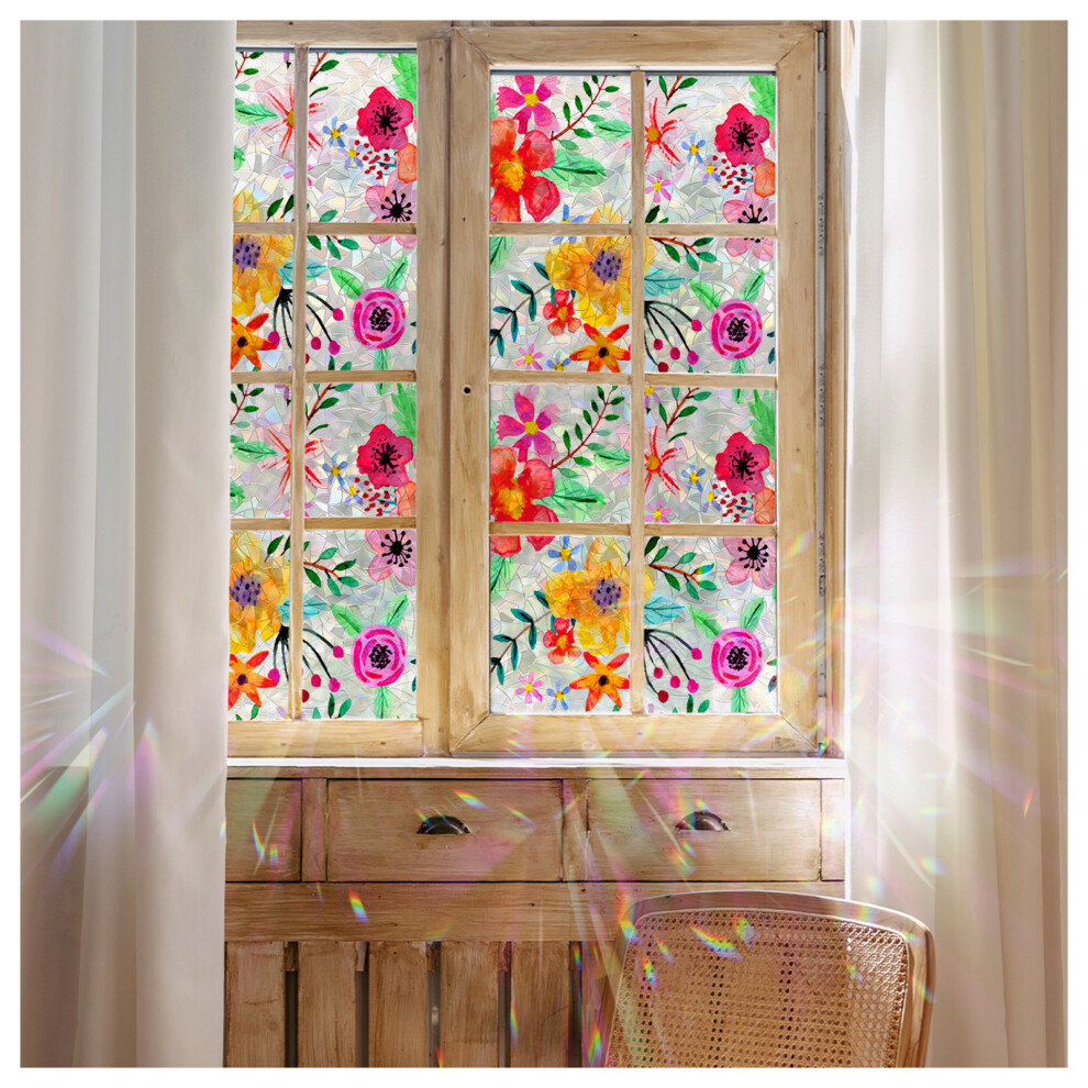 (43x100cm) Colorful Flowers Glass Window Films No Glue Static Privacy Glass Door Film,Translucent Glass Static Cling,Heat Control,Anti UV