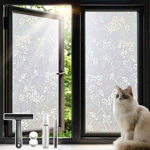 (43x100cm) Flower Suncatcher Window Films No Glue Static Privacy Glass Door Film,Translucent Glass Static Cling,Heat Control,Anti UV
