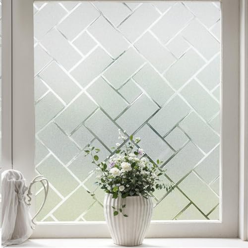 Beautysaid Window Privacy Film for Frosted Windows: Modern Brick Patterned, Anti UV Obscure Window Films, Self Adhesive Static Cling No Glue Removable, Opaque Frosting Window for Home Office, 90x300cm