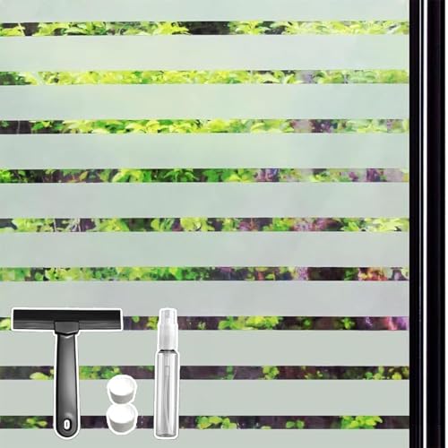 Qualsen Window Film Privacy, Frosted Window Films Stripe Privacy Film for Glass Windows, Non Adhesive Static Cling Windows Cover for Office, Home, Kitchen (60 x 300 cm, Wide Stripe)