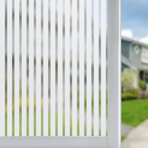 Qualsen Window Film Privacy, Frosted Window Films Stripe Privacy Film for Glass Windows, Non Adhesive Static Cling Windows Cover for Office, Home, Kitchen (44.3 x 200 cm, Medium Stripe)