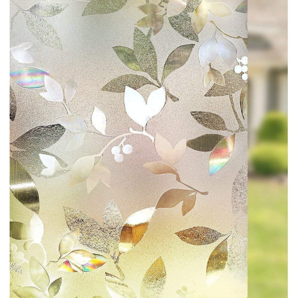 Qualsen Window Film Privacy Frosted Window Films Leaf Pattern Decorative Privacy Film for Glass Windows Non Adhesive Anti UV Static Cling, for Home Kitchen Bedroom (60 x 200 cm)