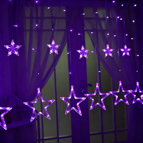 shsyue LED Star Window Curtain Lights, Christmas Decorations Lights Indoor,12 Stars 138 LED String Lights,USB 8 Modes Xmas Lights for Wedding Party Garden Outdoor -Purple