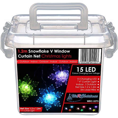WeRChristmas Snowflake V Window Curtain Net Lights, 15 Colour Changing LED, 1.2 x 1.2 m - Multi-Colour