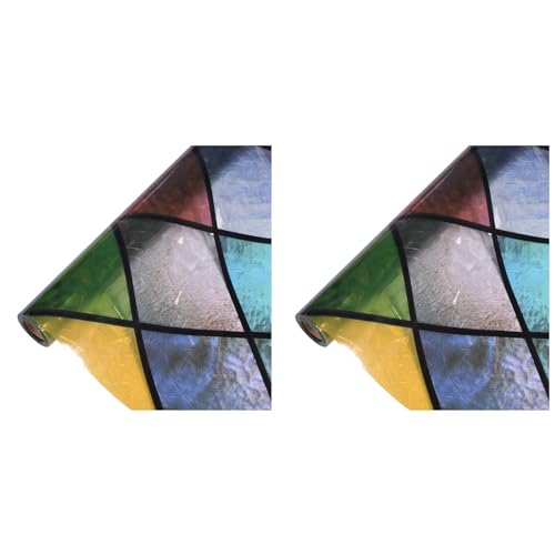 HWIREUIGT 2X Privacy Window Film, Stained Glass Rainbow Window Tint, Glue Free 3D Decorative Window Stickers for Home, Office 60cm