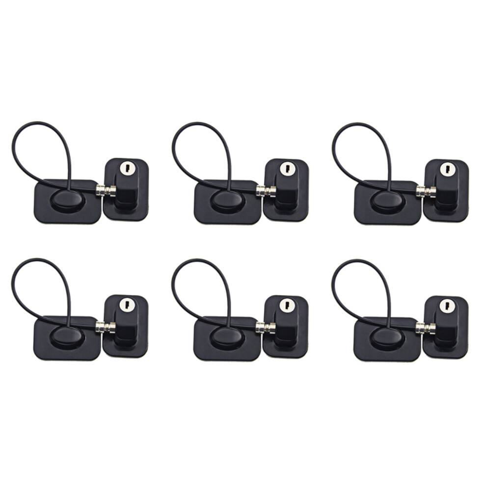 6X Window Restrictors with Safety Lock Cable, No Screws Required to Avoid Damage Black