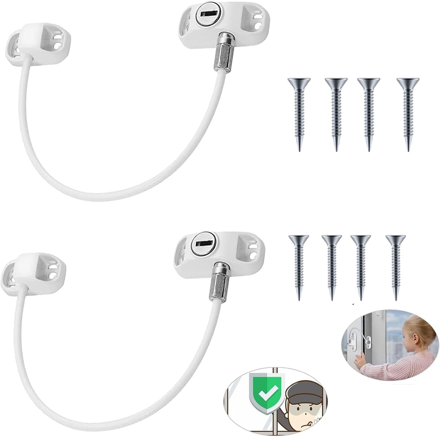 2X Window Restrictors with Safety Lock Cable, No Screws Required to Avoid Damage and Protect the Safety