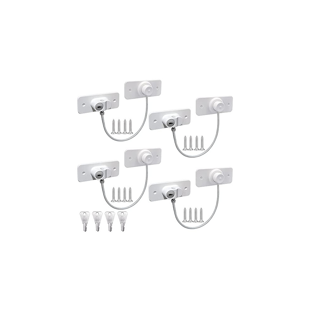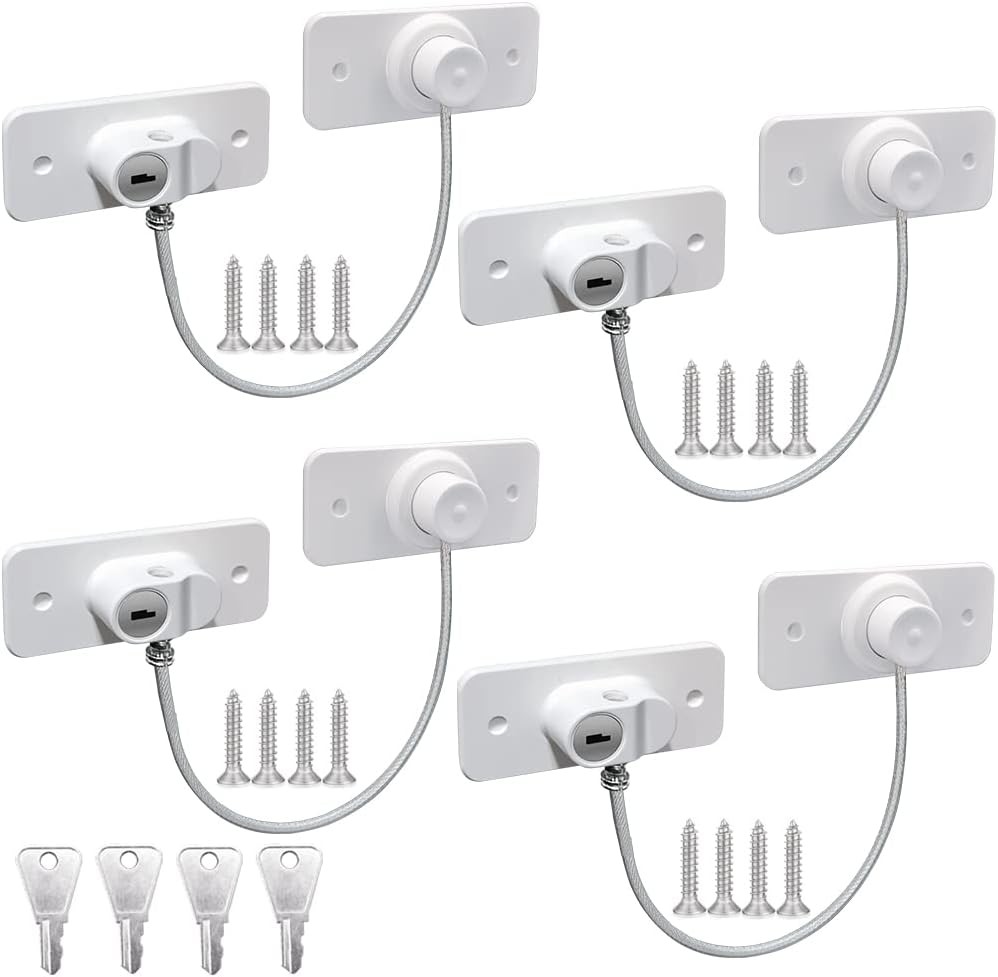 4 Pack Window Restrictors for UPVC Windows, Safety Locks with Key Cable Lock Door Fridge Cupboard for Children,Drillable/Self-Adhesive
