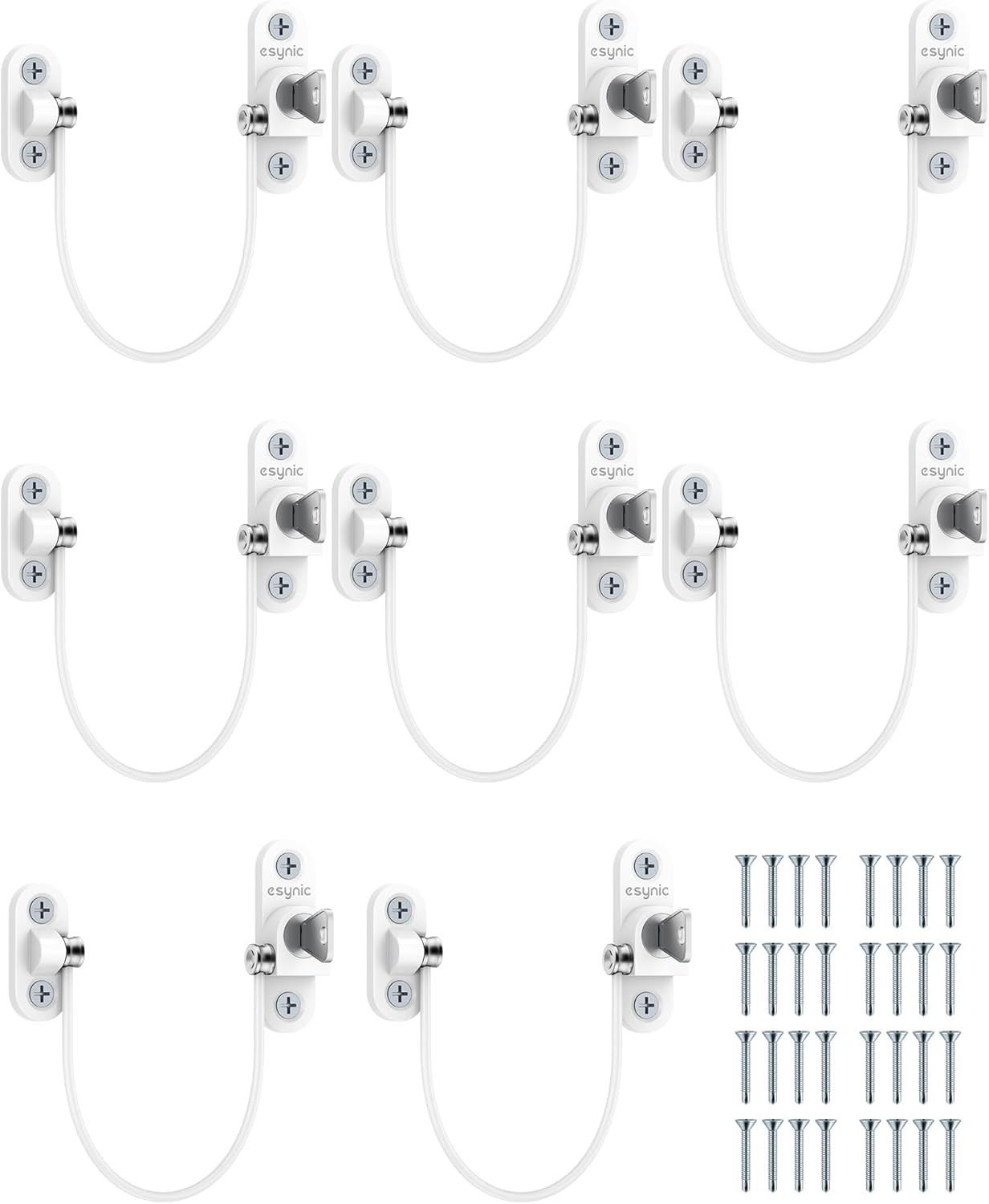 eSynic 8Pack Durable Window Locks Child Safety 185mm/7.3 Inch Wire Long Window Restrictor for UPVC Window Safety Restrictors with Key Relieable Window