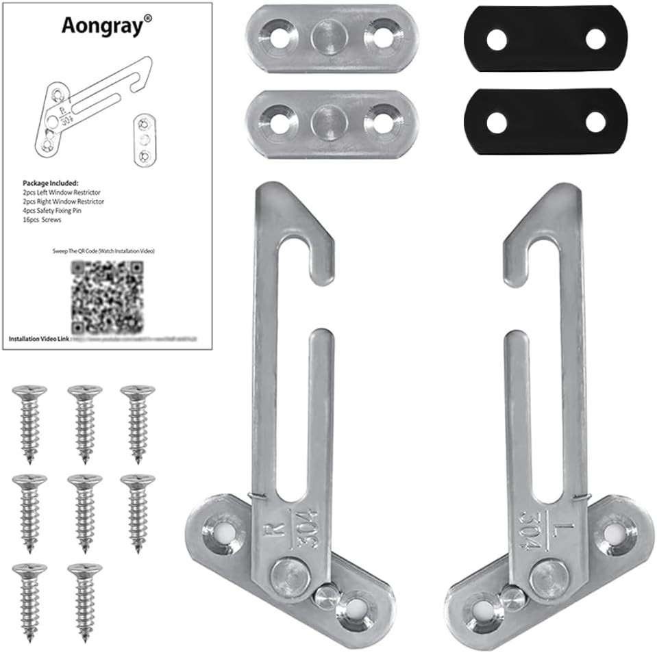 1 Pair Window Restrictors Locks,Aongray Window Restrictor Hook Window for UPVC Stainless Steel 304 Security Lock Child Lock,Right Handed and Left