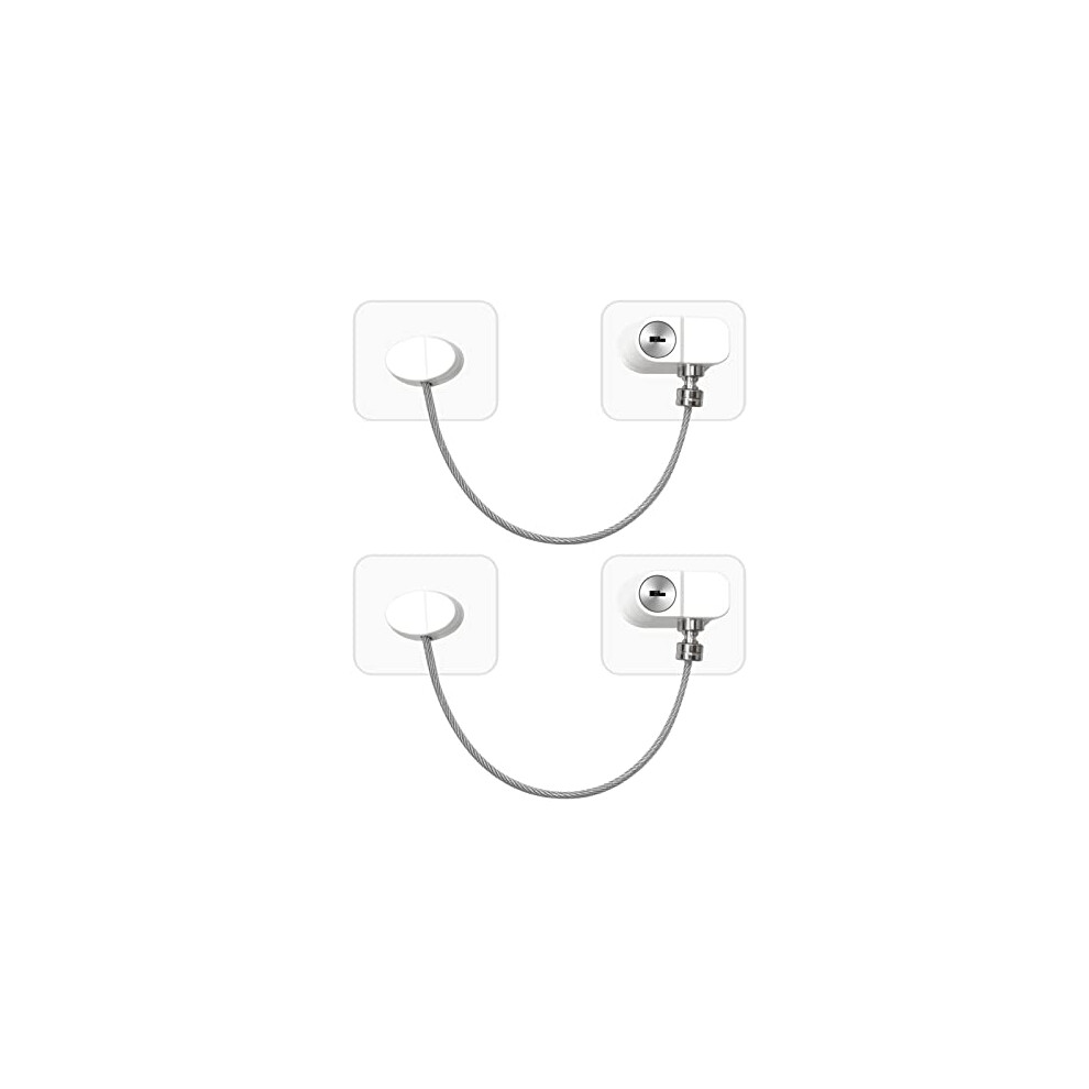 2 Pack Window Safety Locks with Keys, NewBinn Child Baby Safety Security Refrigerator Locks Cable, Adhesive Window Opening Restrictors Security Locks