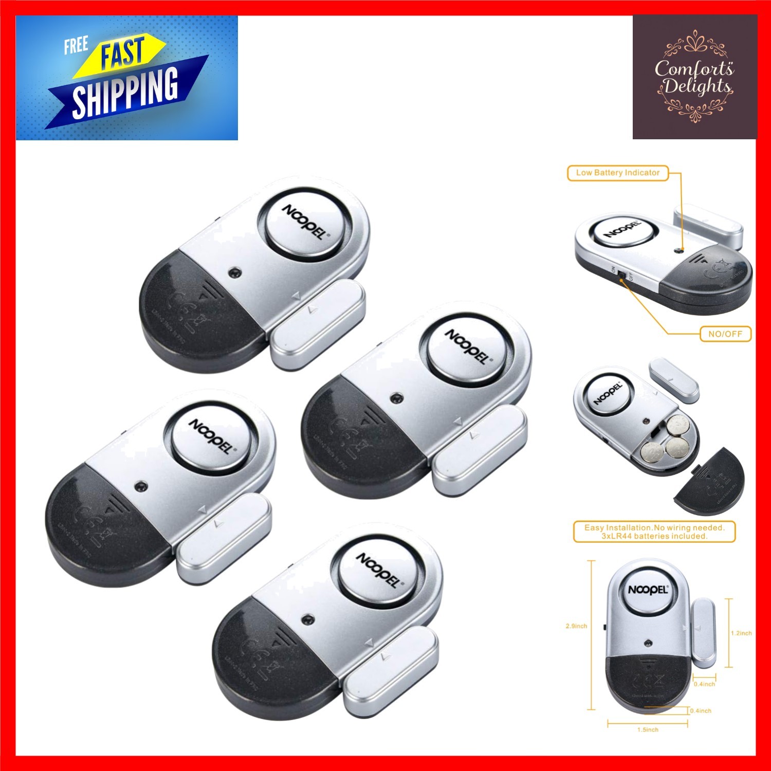 120dB Door Window Alarm - 4 Pack, Magnetic Sensors, Easy Adhesive Mount