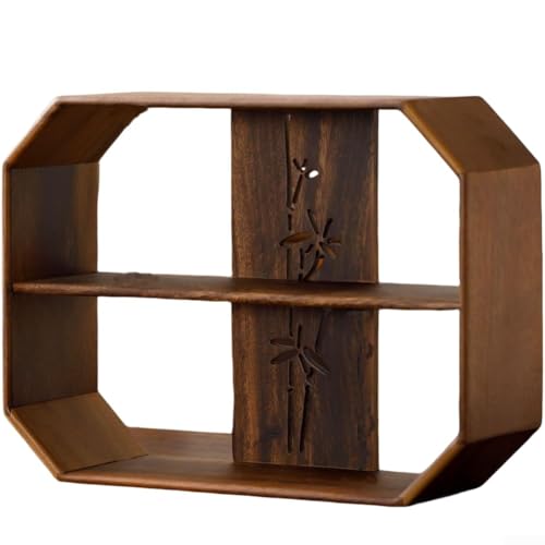 Aprilsunnyzone Solid Wood Window Flower Display Shelf With Openwork Lattice Design For Tea Set Storage And Modern Minimalist Home Organization(37.5 * 28 * 11)