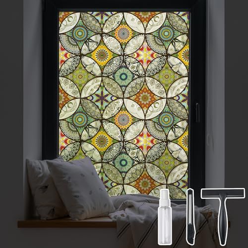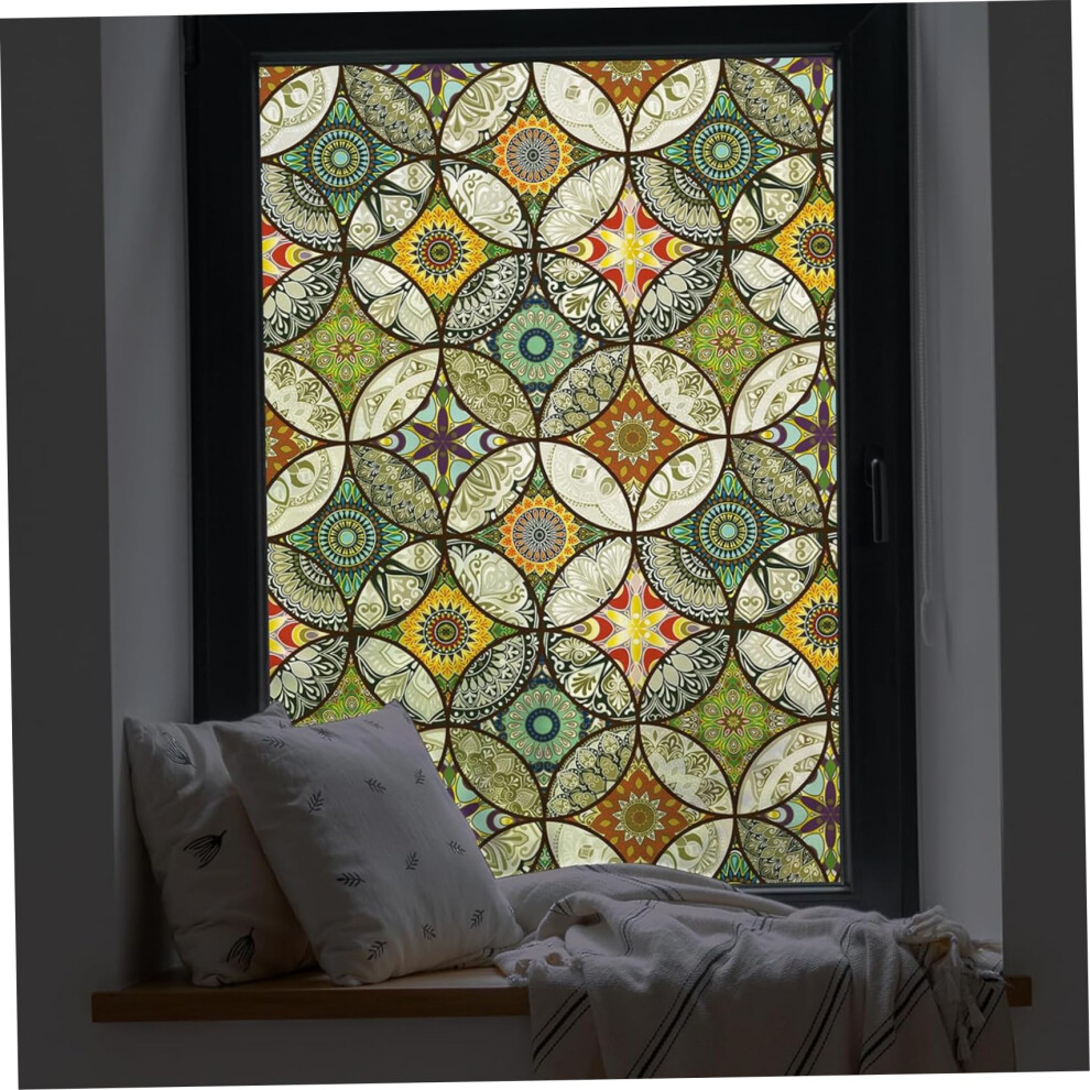 Zindoo Non-Adhesive Window Film Stained Glass Window Film Static Frosted Privacy Film Window vinly Window clings 90 x 200 cm