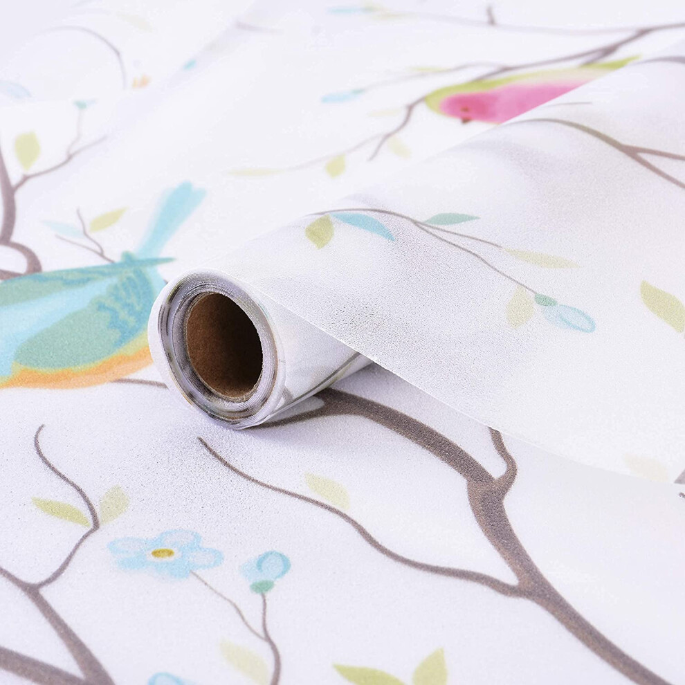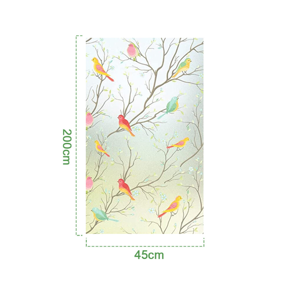 Lifetree Self Adhesive Stained Glass Window Film with Birds Pattern - Privacy Film for Glass Windows, Static Cling No Glue, Anti UV Decorative Cover for Bathroom and Door (Frosted, 44.5 x 200cm)