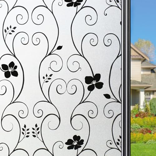 Qualsen Window Film Privacy Film for Glass Windows Frosted Window Film Flower Pattern Stained Glass Window Film Decorative Window Sticker Static Cling Glass Film 90 x 300 cm