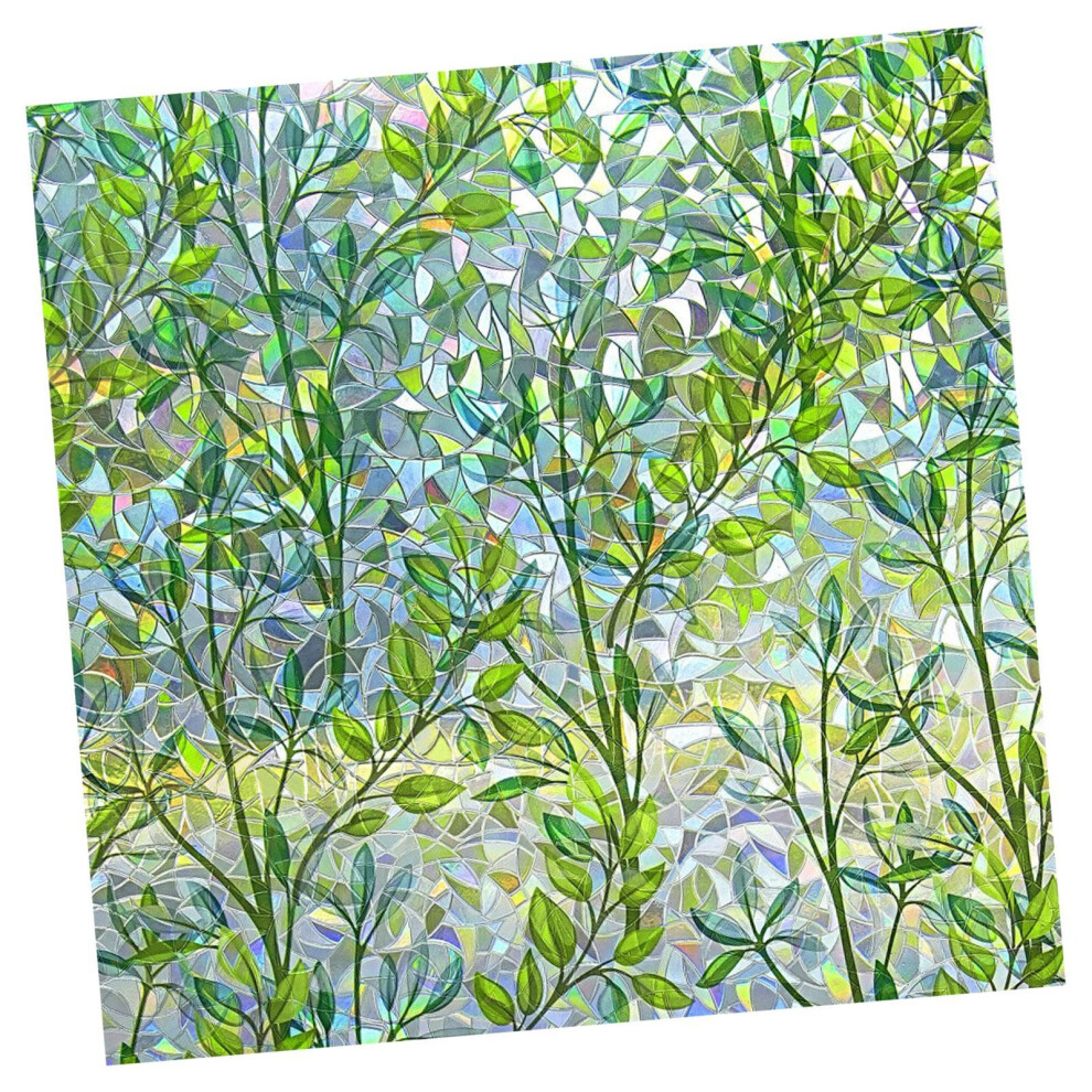 Runtoo Window Privacy Film Rainbow Eucalyptus Leaves Boho Window Clings 3D Decorative Vinyl Stained Glass Botanical Green Leaf Decals Static Sticker Non-Adhesive, 15.75 x 40 inches