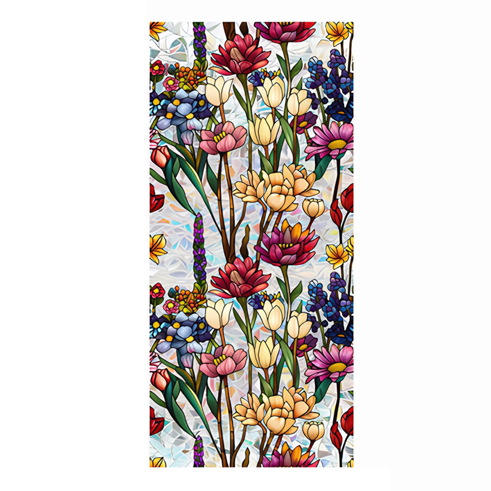 Heat Control Window Stickers Decorative Stained Glass Film Privacy Window Film UV Blocking Glass Clings Static Cling Frosted Glass Film With Tulip Pat