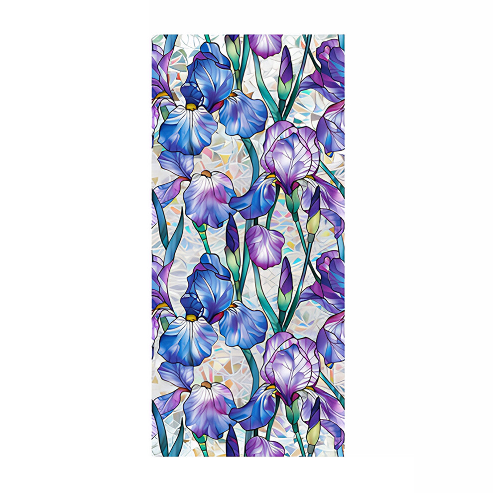 Runtoo Window Privacy Film Rainbow Purple Floral Window Clings 3D Decorative Vinyl Stained Glass Iris Flowers Decals Static Sticker Non-Adhesive, 15.75 x 40 inches