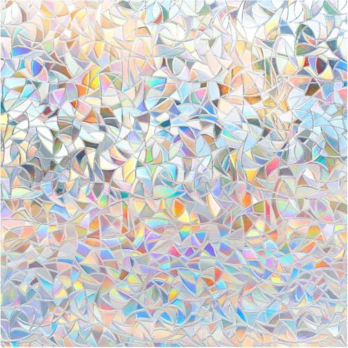 DOWELL Rainbow Window Film Privacy Stained Glass Window Film Non-Adhesive 3D Static Cling Glass Stickers Removable Vinyl Decorative Coverings Rainbow Effect Anti UV for Home Office 44.5 x 200 cm