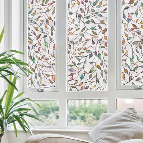 Privacy Window Film for Home, Frosted Glass Window Film Stained Glass Window Film with Nature-Inspired Design, Heat Control and Energy Saving Static