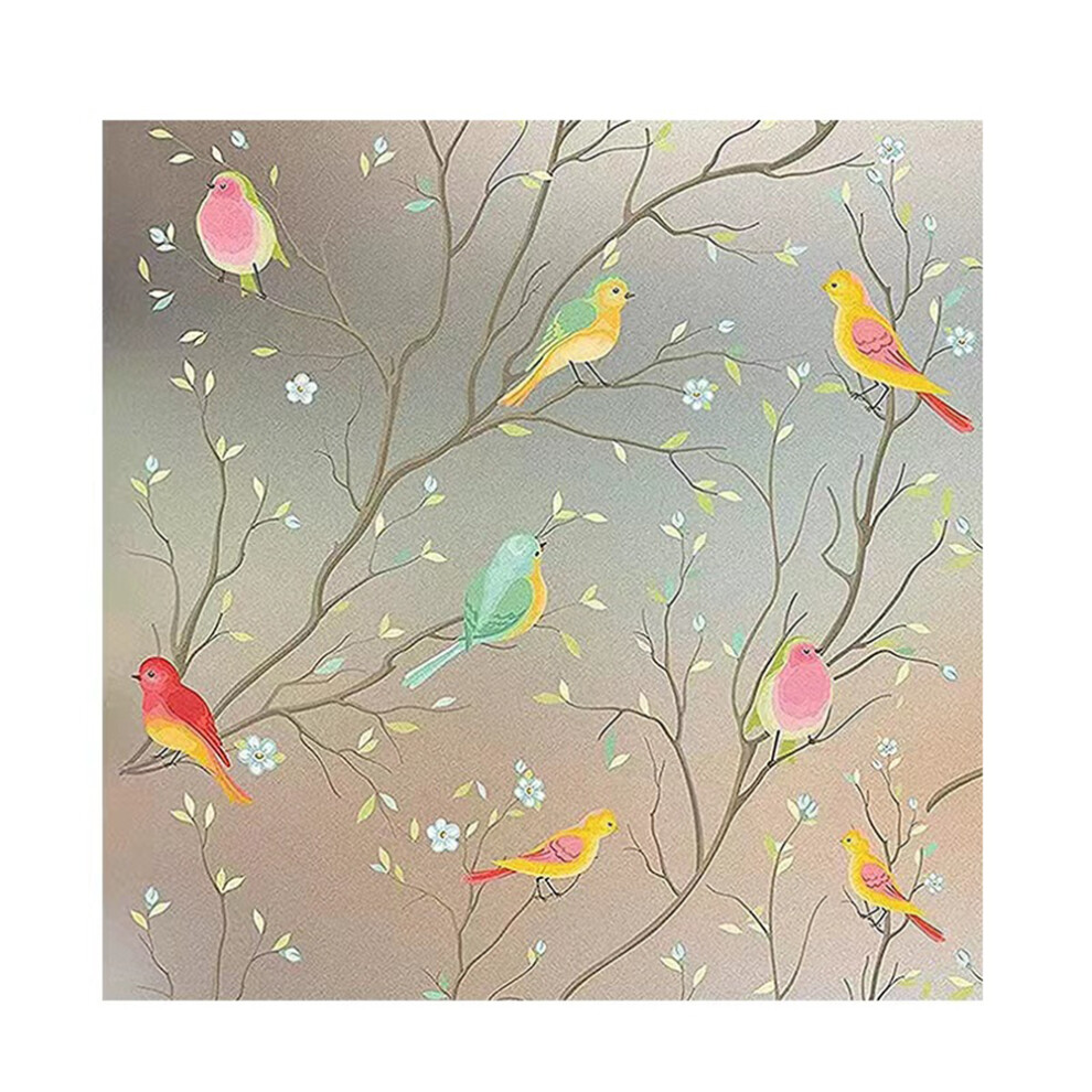 Elegant Birds Pattern Window Film, Stained Glass Window Film Creates Private Space With Cozy Atmosphere, Decorative Window Covering for Bedrooms Livin