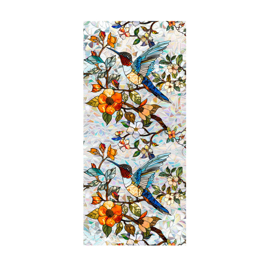 Decorative Privacy Window Film, Stained Glass Window Film with Bird And Flower Design for Cozy Atmosphere and Elegant Room Transformation