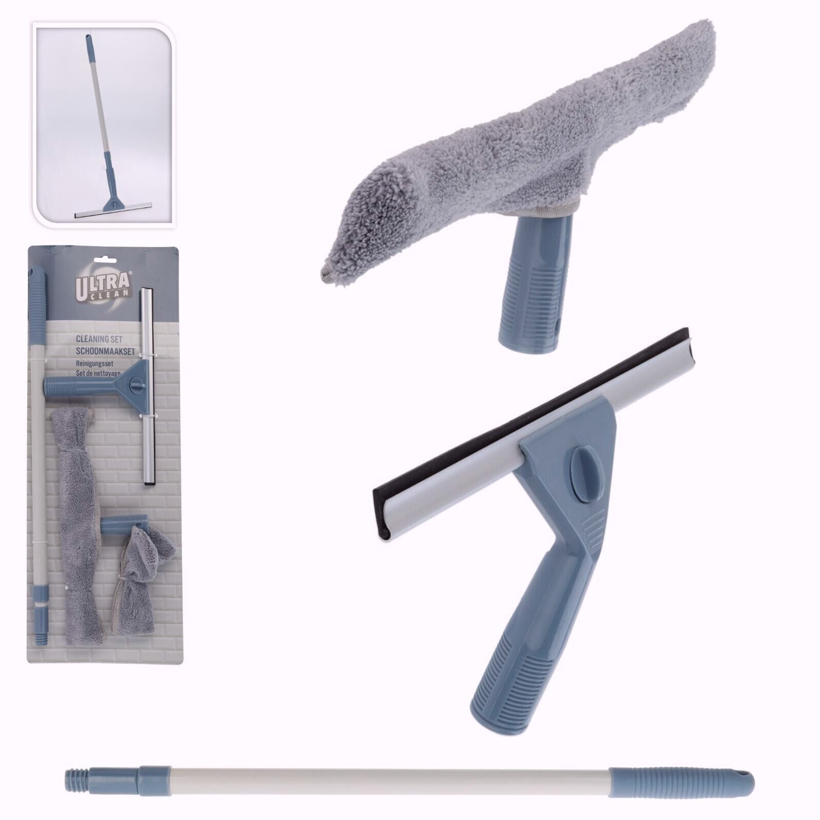 Squeegee Windscreen Window Wiper Cleaning Set Shower Steam Window Clean 4Pc Grey