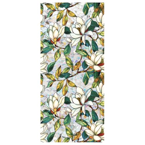 JOONOR Retro Window Film Flowers Privacy Stained Glass Stickers White Magnolia Privacy Rainbow Stickers Living Room Sun Blocking Decoration Removable