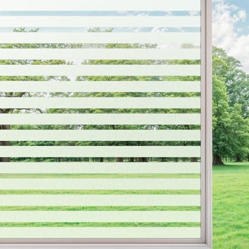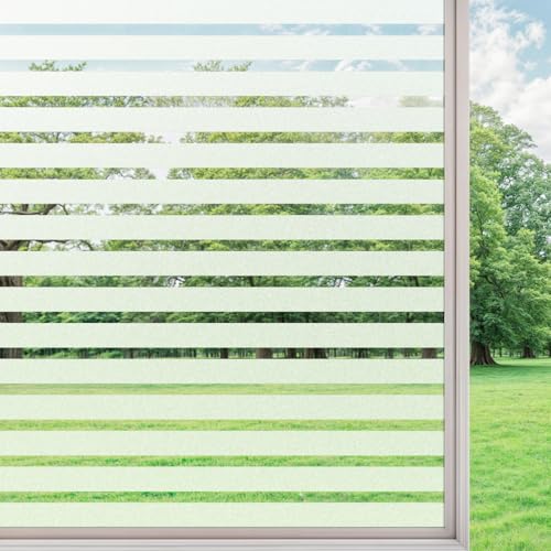 DARUITE Window Film Privacy Film for Glass Windows, Stripe Pattern Frosted Window Film Self Adhesive, Window Privacy Film Decorative No Glue Static Cling Window Stickers for Home Office, 44.3x200cm