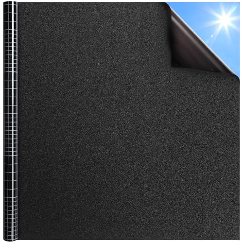 Total Blackout Window Privacy Film Day and Night 100% Light Blocking Static Cling Room Darkening Window Tint Black Door Stickers for Home Office, No Glue Anti-UV (Frosted-Black, 17.5 Inch x 7.8 Feet)