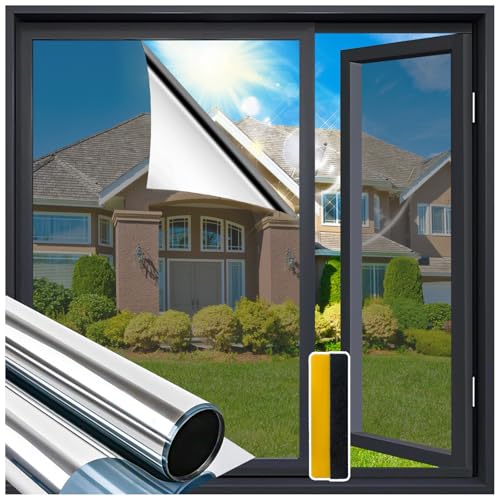 Zindoo Window Film Privacy One Way Clear, Reflective Window Film, Static Window Stickers For Glass Privacy Film Sun Blocker Mirror Tint Film for Home Office (105x400cm, Silver)