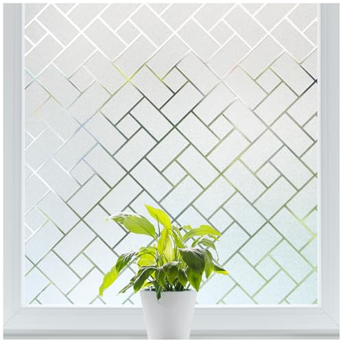 VSUDO Privacy Window Film, Diamond Pattern Window Tint for Home, Static Cling Window Glass Stickers (90x200 cm)
