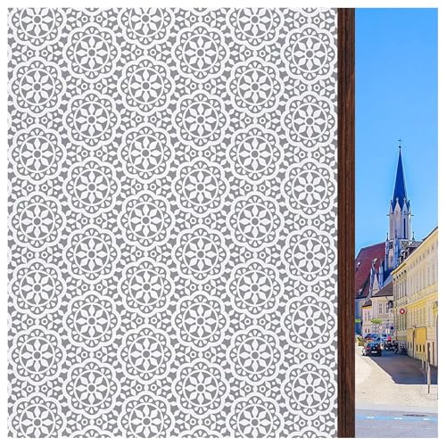ConCus-T Patterned Window Privacy Film Frosted Window Film Lace Decorative Glass Film Static Cling No Glue Self Adhesive Window Vinyl Stickers for Home Office Bathroom, 75 X 400 cm