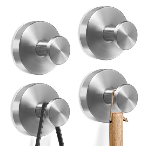 Gomeer 4PCS Silvery Suction Cup Hooks for Hanging up to 22lbs No Drill Suction Hook for Bathroom Towel Shower Door Window,Stainless Steel Vacuum Adhesive Heavy Duty Christmas Wreath Door Hanger