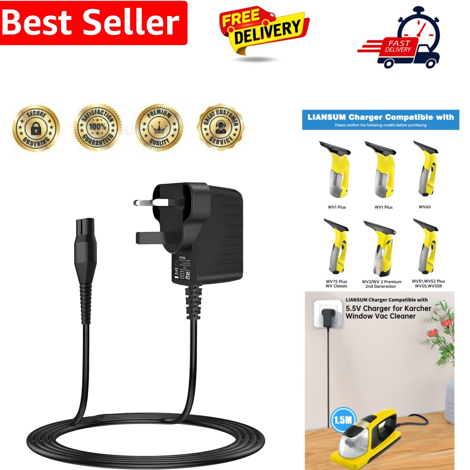 5.5V Charger Compatible with Karcher Window Vac Vacuum Cleaner WV1,WV1 Plus, ...