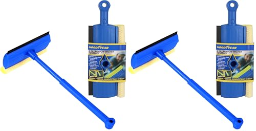 Goodyear 2 In 1 Window Squeegee Flexible Rubber Blade| Netted Sponge Scrubber| Multi-purpose And Easy To Use| Non - Scratch| Ideal For Cleaning Windows And Windscreens| Compact Design, Easy Storage