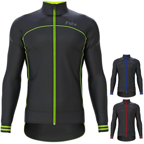 FDX Cycling Jacket Men’s - Windproof, Breathable, Softshell Fabric Cycle Tops - Full Zipper, Long Sleeves Thermal Reflective Jersey - Winter Outerwear Coat for Riding, Running, (BLU -L)