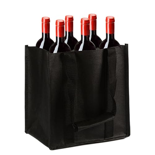 Generisch Felt Wine Bottle Bag, Wine Bottle Carry Bag with 6 Compartments, Reusable Beer Bottle Holder, Felt Material Bottlebag Beer Bag for Sportswear Wine Lovers, black, see description, See