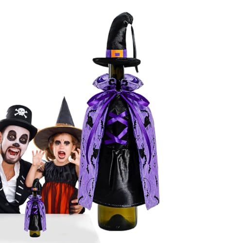 Lyricalist Halloween Wine Bottle Cover, Wine Bottle Decorations - Black Purple Witch Bottle Cover, Scary Decorative Decorations for Wine Bottles, Wine Bottles