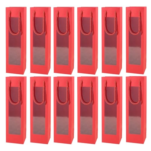 DQZSY 12 Pieces Kraft Paper Wine Bottle Bag, Wine Bottle Holder with Handles, Kraft Tissue Paper, Retail Wine Bag for Christmas, Wedding, Party, 3.7 x 3.7 x 13.7 Inches (Red)