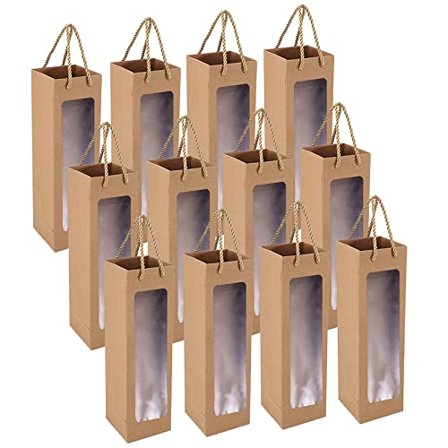 DQZSY 12 Pieces Kraft Paper Wine Bottle Bag, Wine Bottle Holder with Handles, Kraft Tissue Paper, Retail Wine Bag for Christmas, Wedding, Party, 3.7 x 3.7 x 13.7 Inches (Brown)