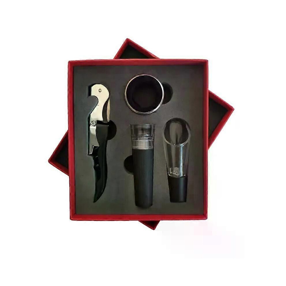 (As show, One size) Wine bottle opener 4-piece tool gift set Wine bottle opener Wine set wooden box