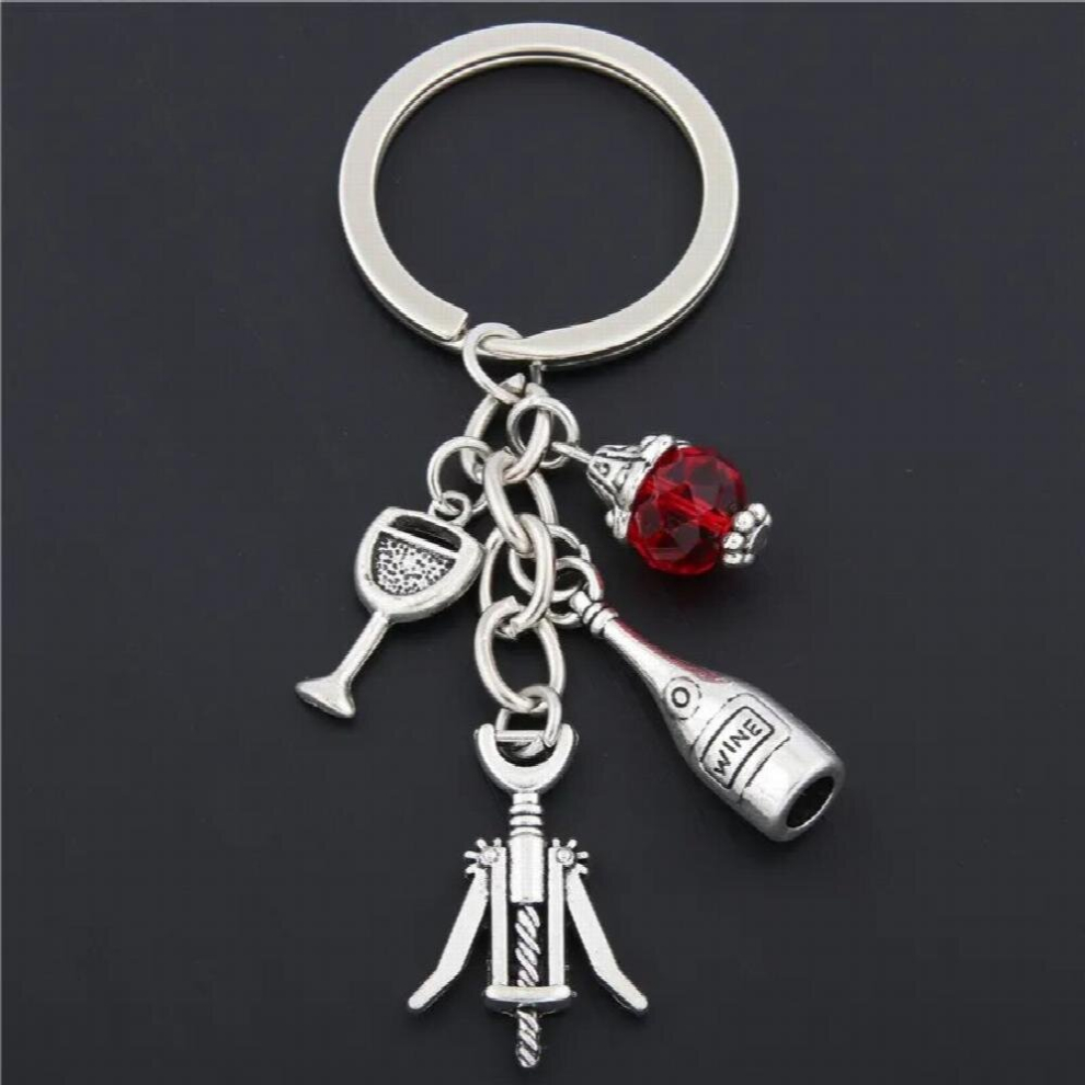 1pc Red Wine Glass Charm Keychain Cheers Jewelry GIfts For Wine Lover Wine Bottle Opener Charm Red Beads Keyring E1674