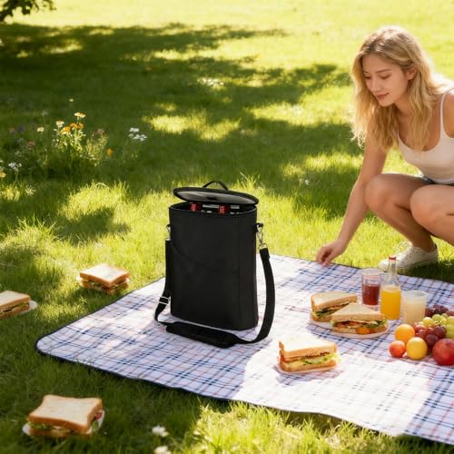 Javoryxh Multifunctional Wine Chiller Bag with Reinforced Handle and Thick Insulation for Carriers Family Outdoor Removable Divider Wine Storage Bag