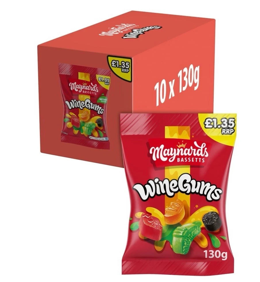 Maynards Bassetts Wine Gums Retro Sweets Bag Pack of 10 x 130g Bags