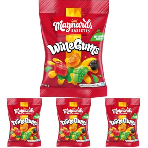 Maynards Bassetts Wine gums Sweets Bag, Fruity Chewy Candies for Sharing, 165 g (Pack of 4)